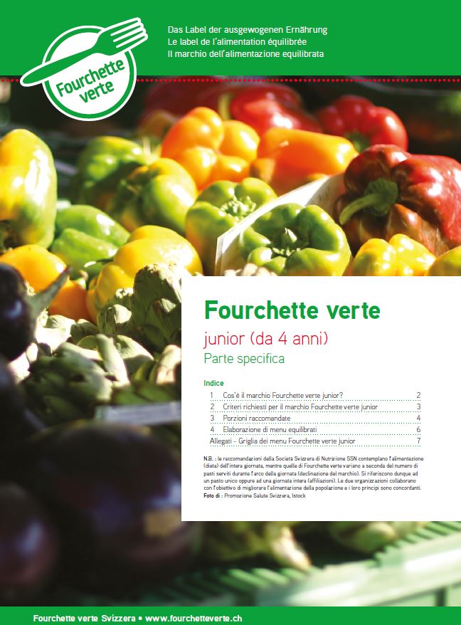 I marchi Fourchette verte e Fourchette verte – Ama terra Junior promuovono un'alimentazione equilibrata e sostenibile per i bambini e i ragazzi a partire dai 4 anni nelle strutture extrascolastiche, nelle mense scolastiche, nelle caffetterie delle scuole post-obbligatorie (licei, ecc.).